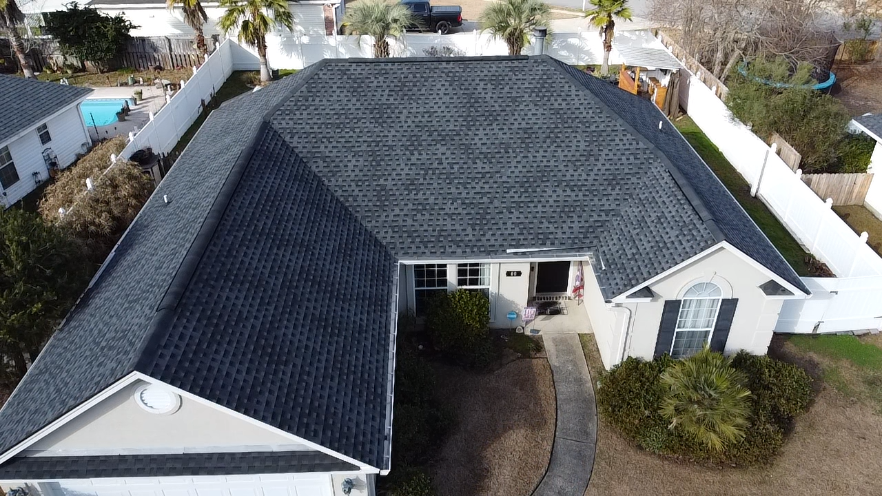 This project included removing and replacing both asphalt and metal roofing, soffit, fascia, gutters, a window, a door, and a new pool entertainment shack. This was a fun project.